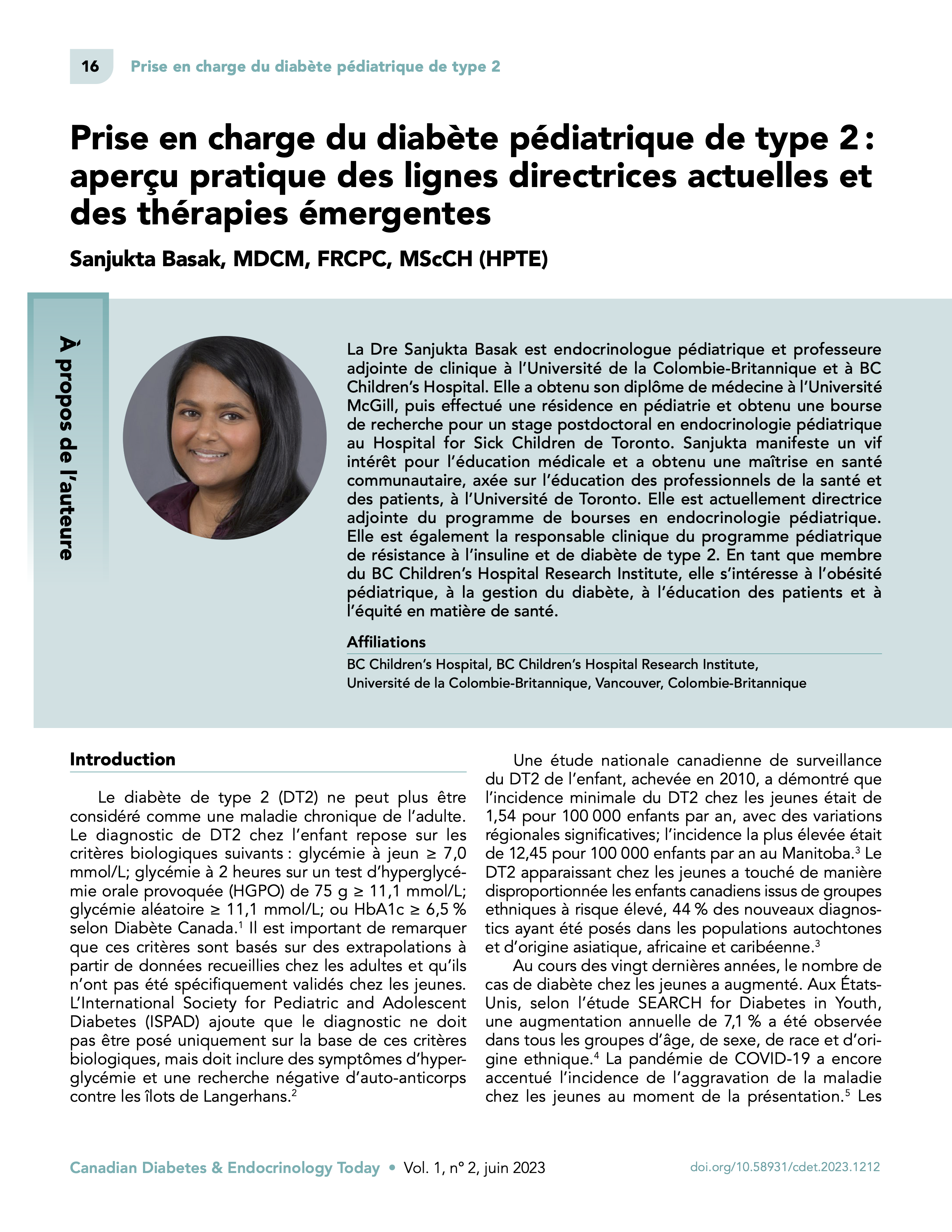 | Titre de la revue Canadian Diabetes & Endocrinology Today. |