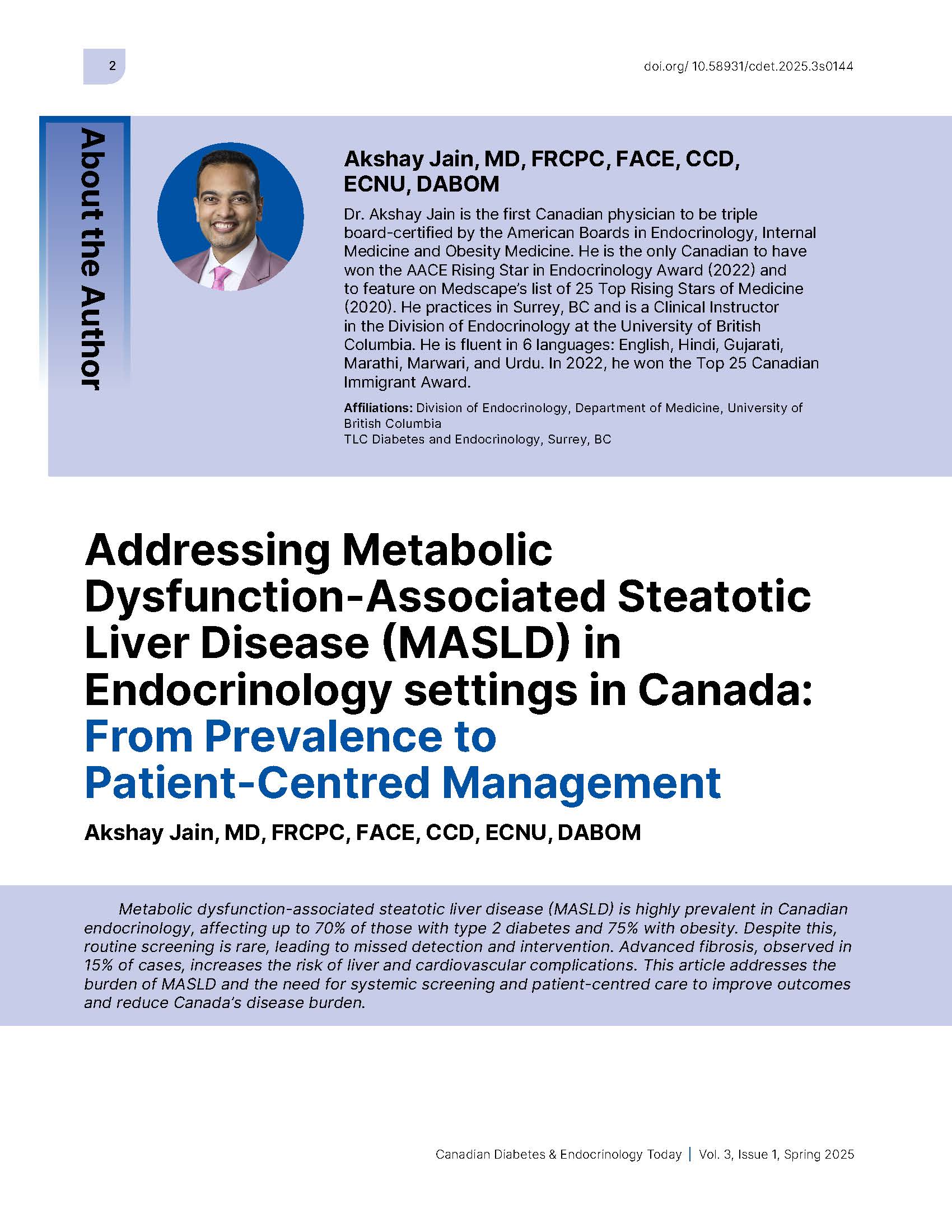 - Addressing Metabolic Dysfunction‑Associated Steatotic Liver Disease (MASLD) in Endocrinology Settings in Canada: From Prevalence to Patient‑Centred Management